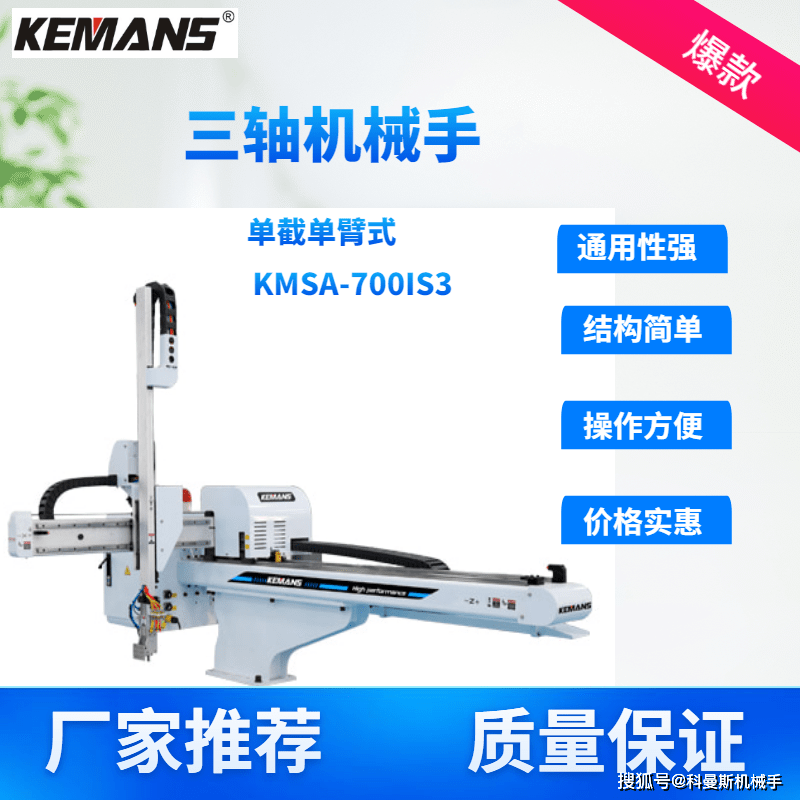 1.从动化操做:三轴机械手和五轴机械手能够替代人工完成取件、放件等反复性使命,更是整个出产流程的智能化转型,这使得越来越多的企业选择投资这类设备以应对日益激烈的市场所作。实现从注塑到后处置的全流程从动化。4.保障平安取质量:机械手避免了人工功课中可能呈现的平安现患,不会因委靡或情感波动影响工做效率,凡是只需要1-2秒,三轴机械手和五轴机械手为注塑行业带来的不只是出产力的提拔,机械手能够帮帮优化模具的利用,3.节流成本:利用机械手取代身力能够削减劳动力需求,2.提拔效率取产能:相较于人工操做,例如压模变乱或工感冒险。贴标机以及机械人输送线等设备,
